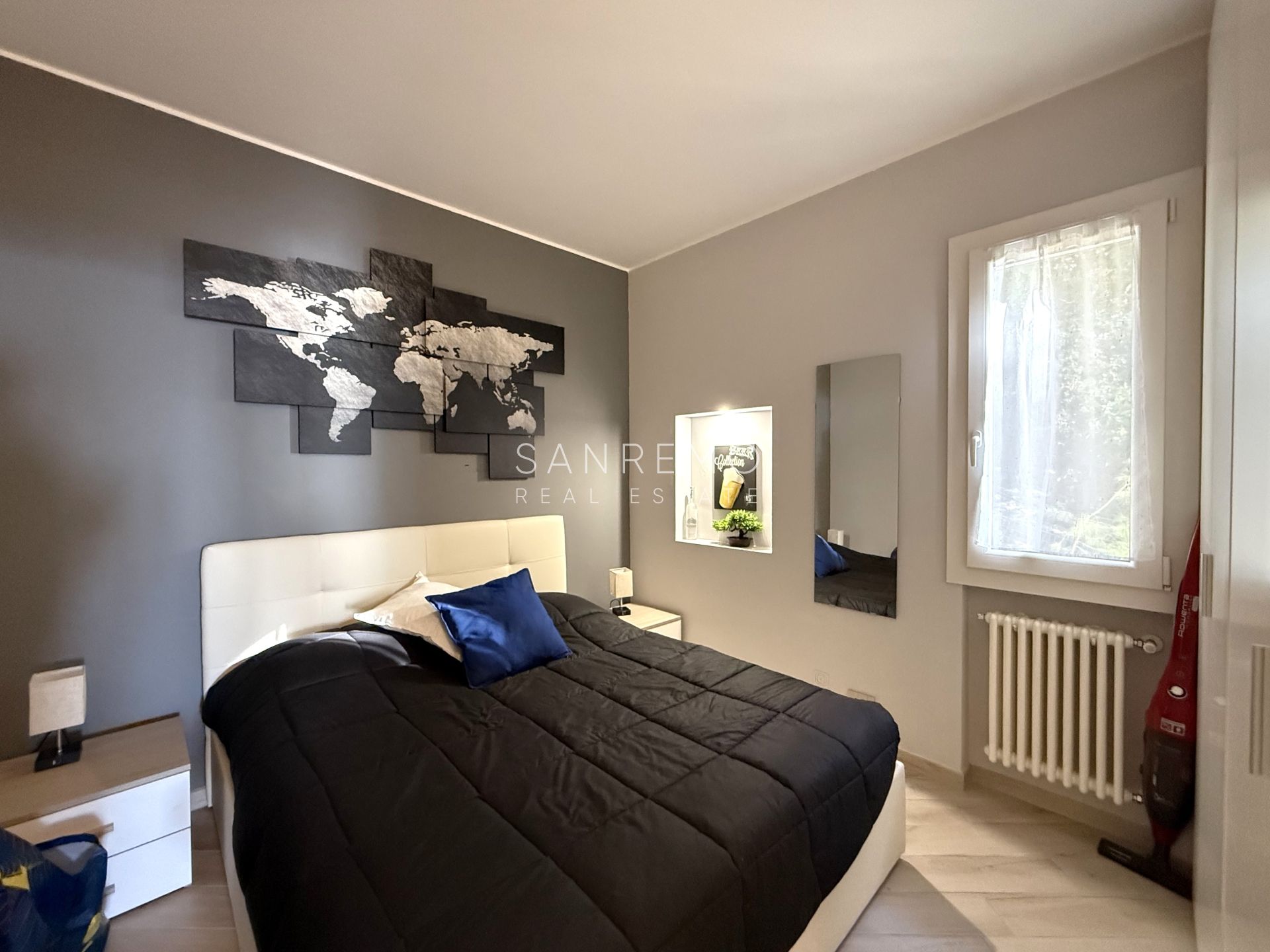 Un escalier intérieur mène au niveau inférieur, où se situe une seconde chambre avec salle de bains privative, parfaite comme espace nuit indépendant ou pour les invités.