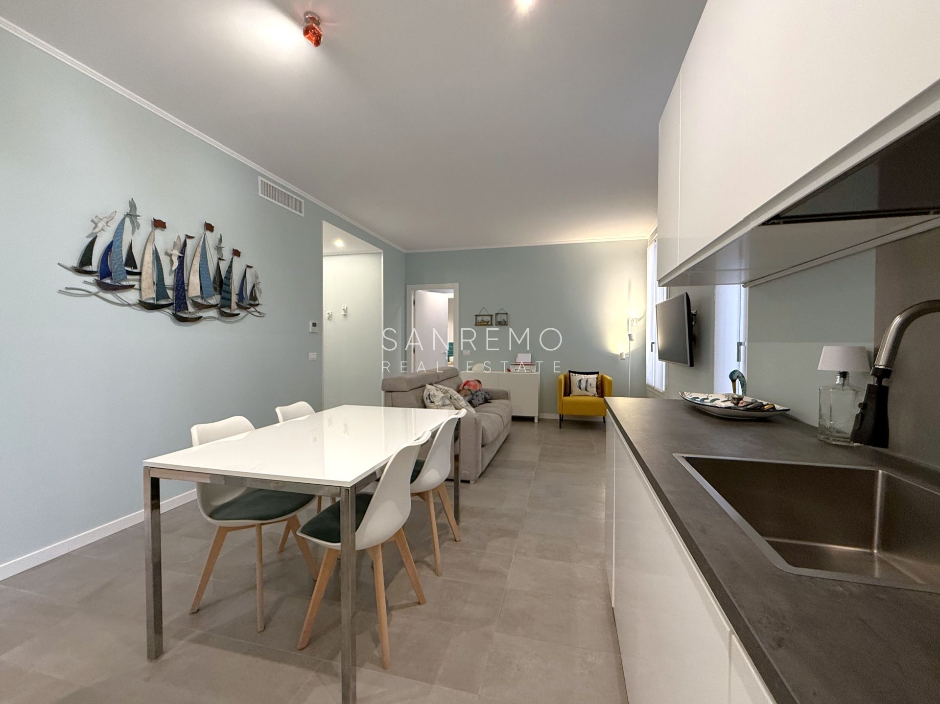 En emplacement ultra central, dans la prestigieuse Via Matteotti, nous proposons à la vente un appartement en parfait état, situé au premier étage (facile d'accès malgré l'absence d'ascenseur), avec entrée indépendante et terrasse privative et habitable.